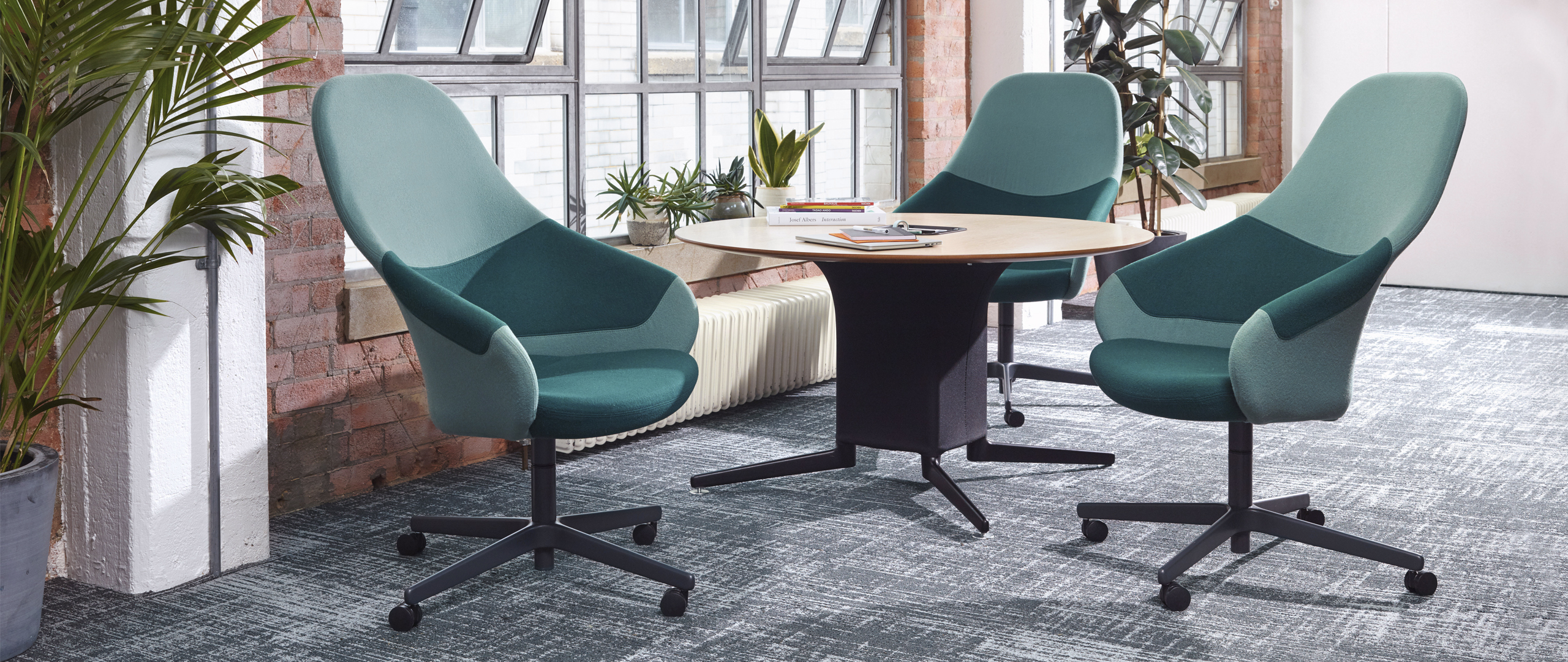 Ad-Lib Tables were developed to work with Ad-Lib seating and share common design values and architecture. Lean material usage and sustainability were fundamental in development, as was the desire to develop a truly universal table program with a very small inventory of components.