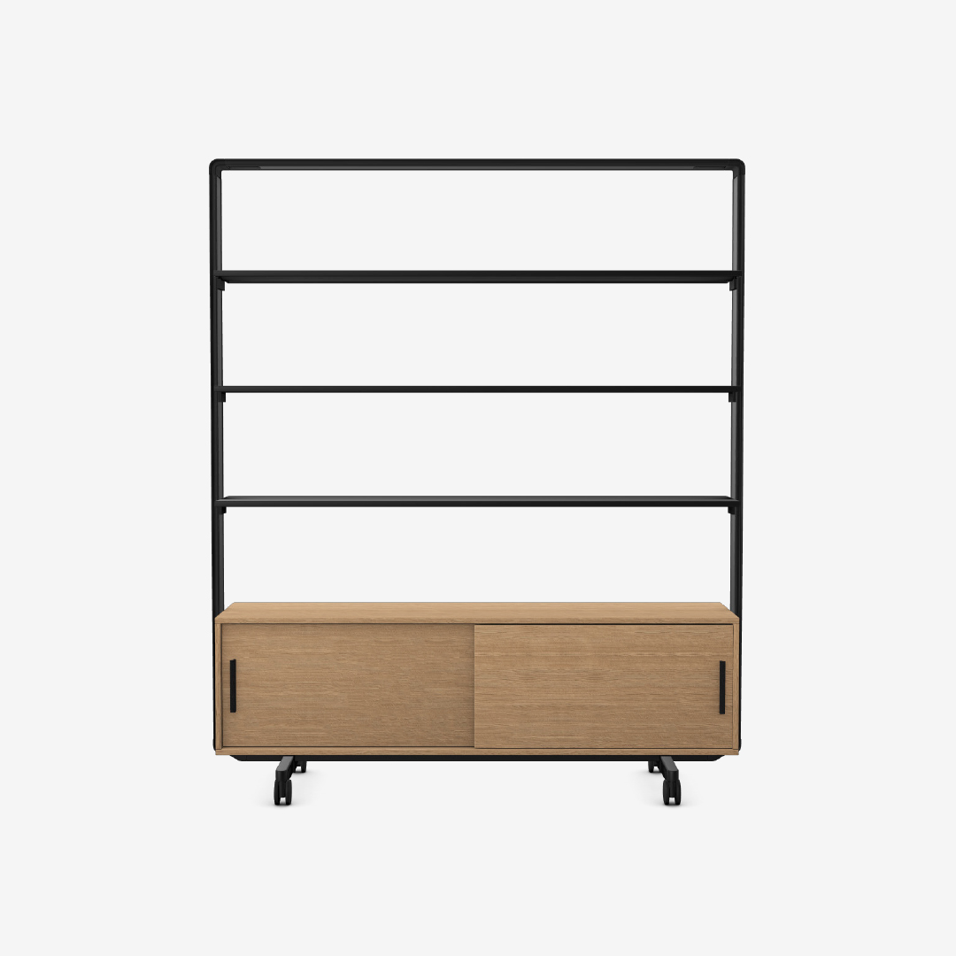 The Adapt Wall Storage is an elegant and mobile storage solution that is not only simple in its form, but also its function, dividing space whilst also being practical.