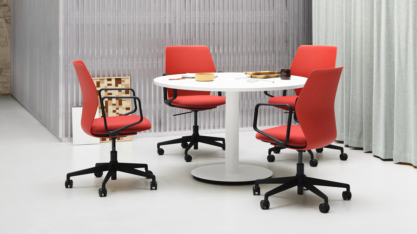 Contour is designed in accordance with circular design principles, ensuring each component product in the system can be easily repaired. The backrest is made using 100% recycled Polypropylene and both backrest and seat come with removable covers, that can be chosen to be upholstered using 100% recyclable material, further ensuring repairability and longevity.