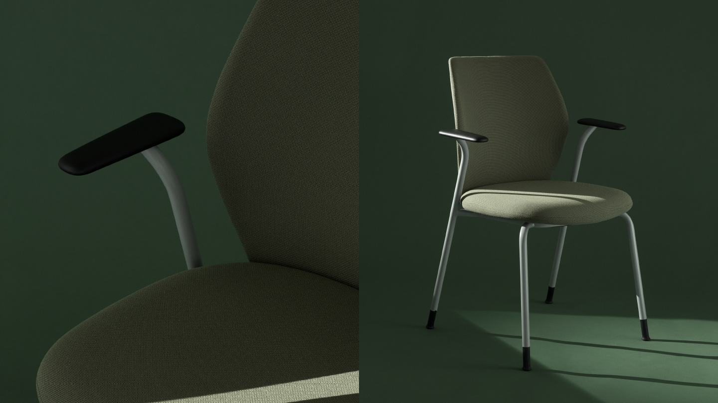 Contour's smart design accommodates a range of tasks and preferences. Inspired by natural elements, its backrest echoes the shapes of shells, hands, or leaves wrapping the contoured seat pad, which recalls the smooth shape of pebbles. This form ensures seamless transitions across various settings - from office spaces to educational environments and more homely environments - while maintaining visual continuity between the backrest and the seat.