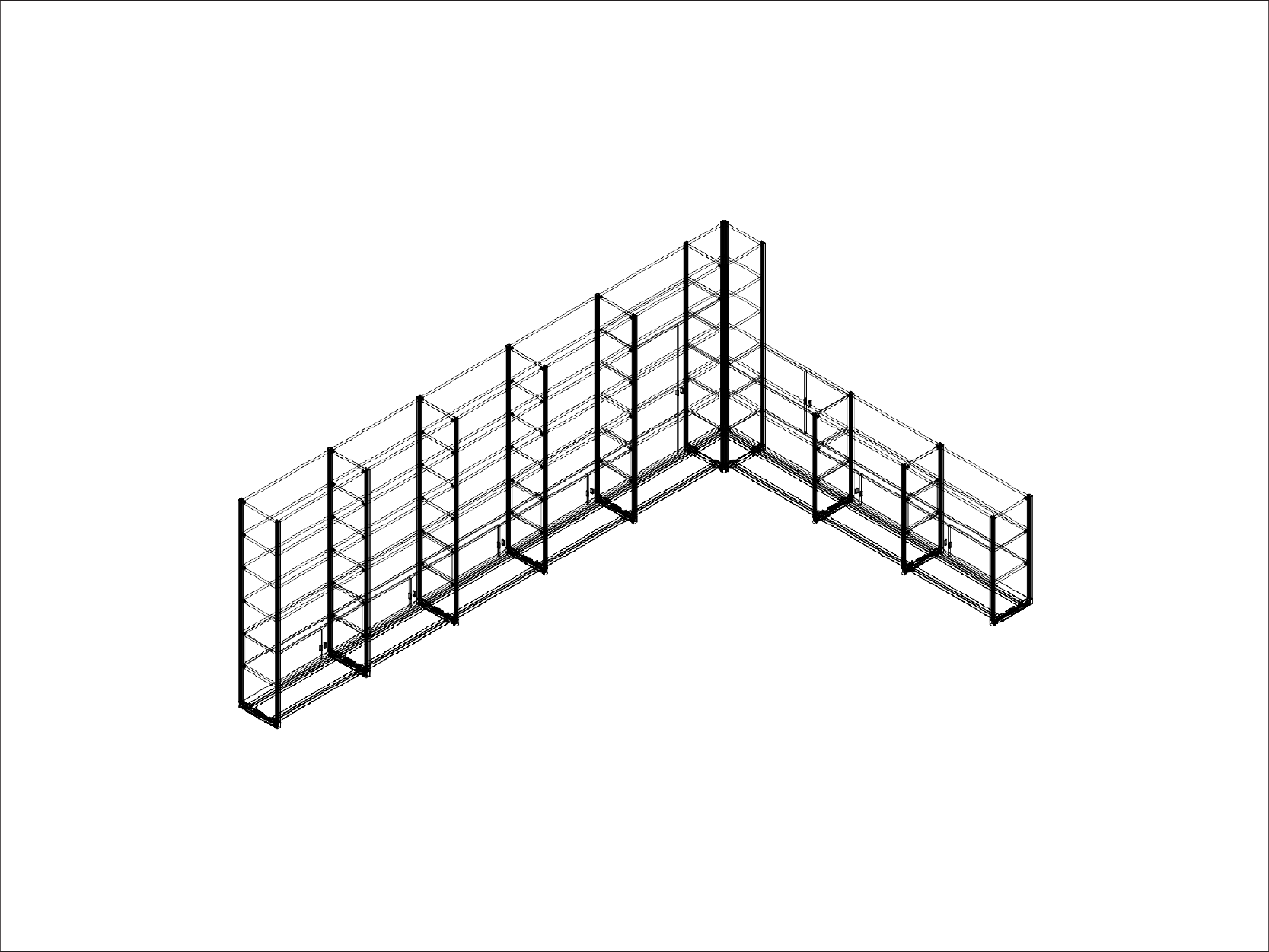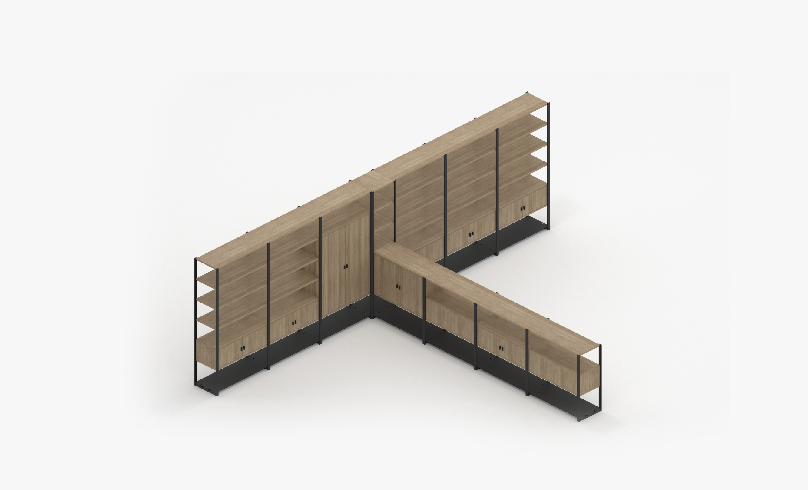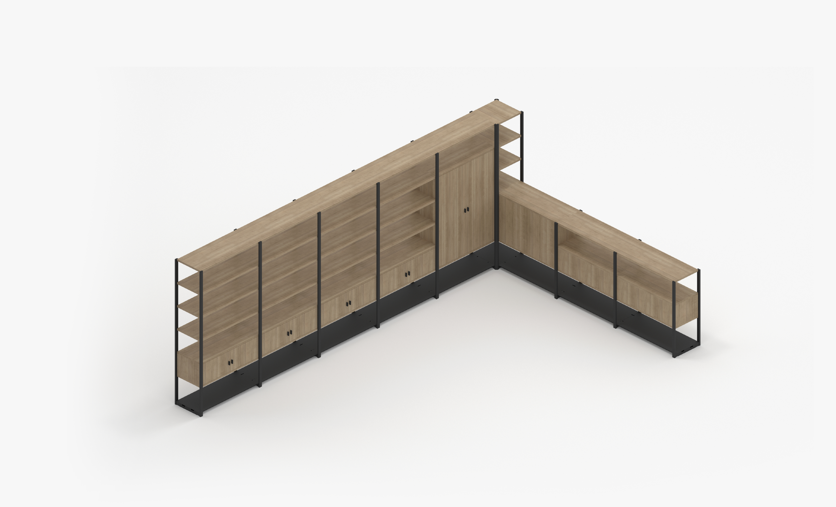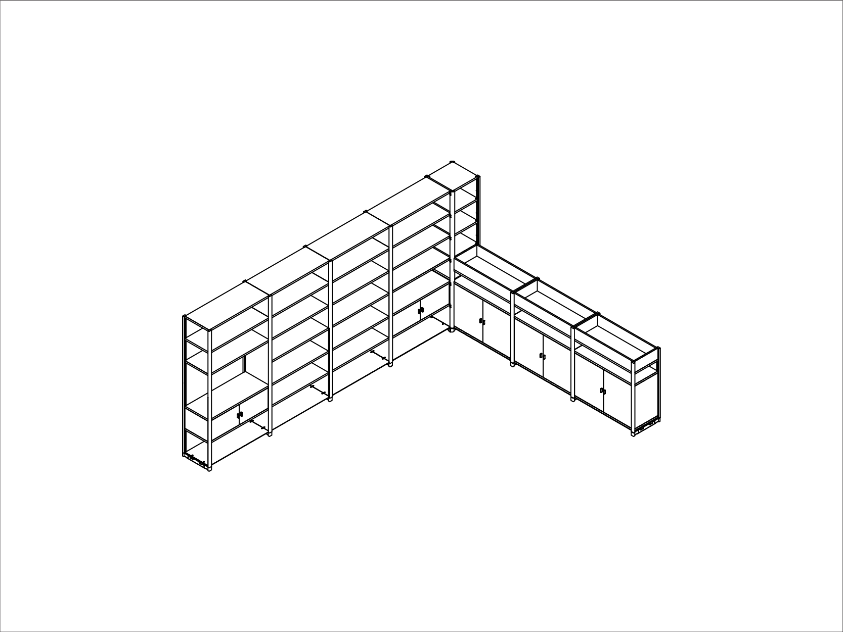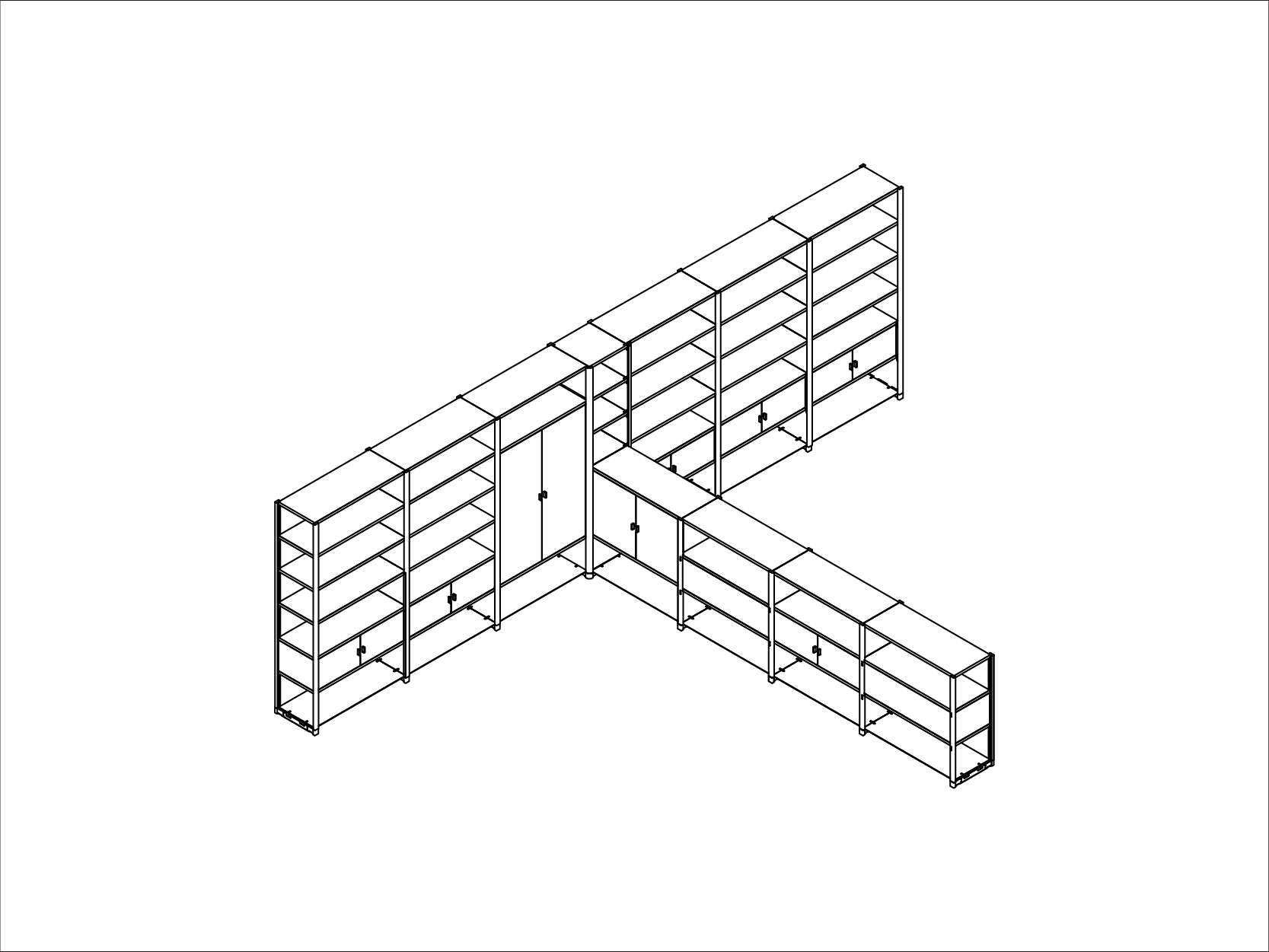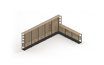 Corner 8 Bay Storage System with Shelves and Cupboards