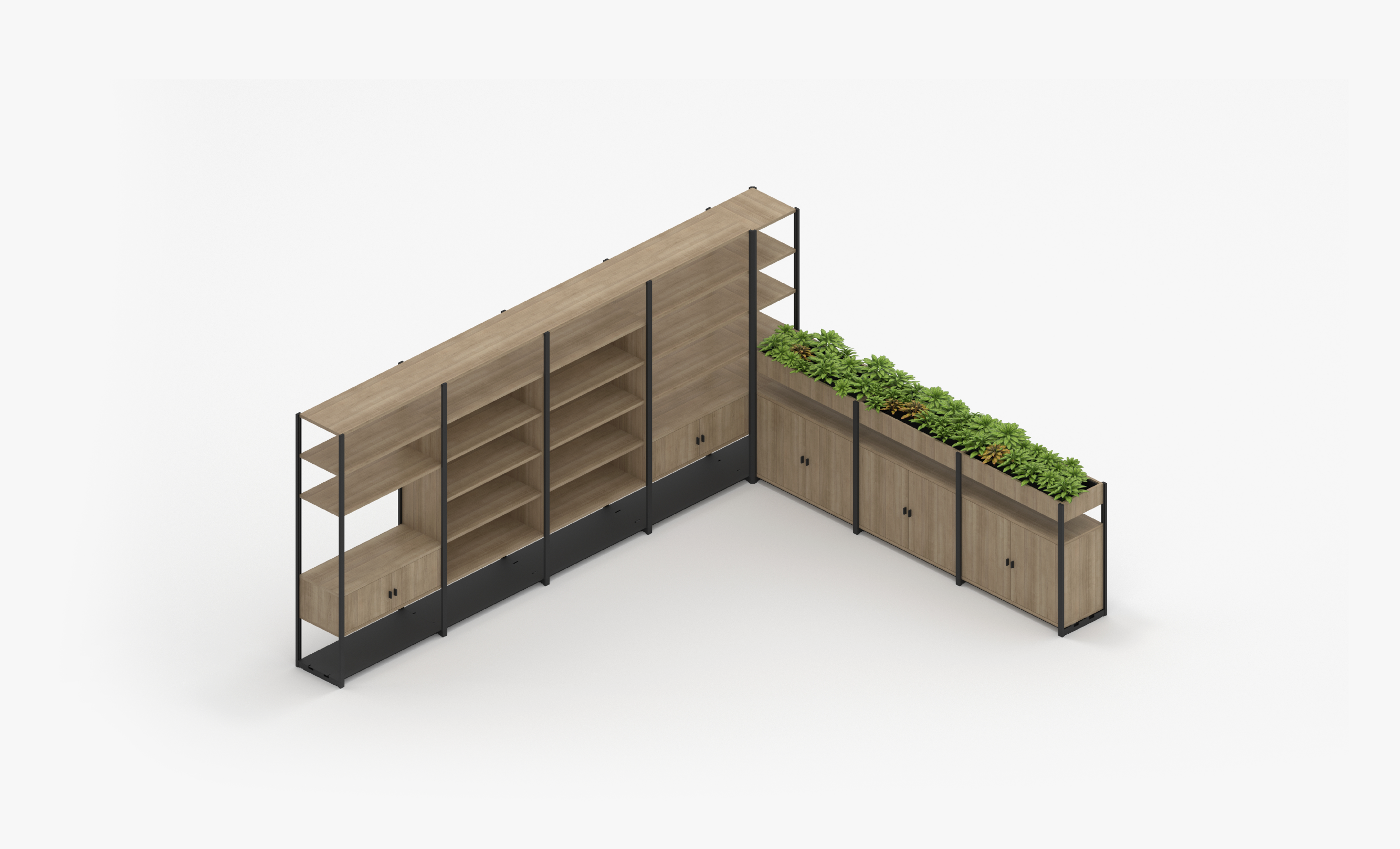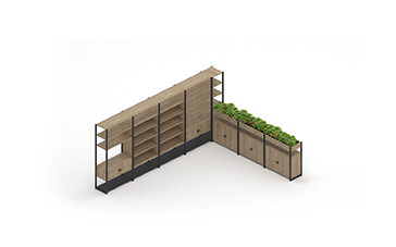 Corner Storage System with Shelves, Cupboards and Planters