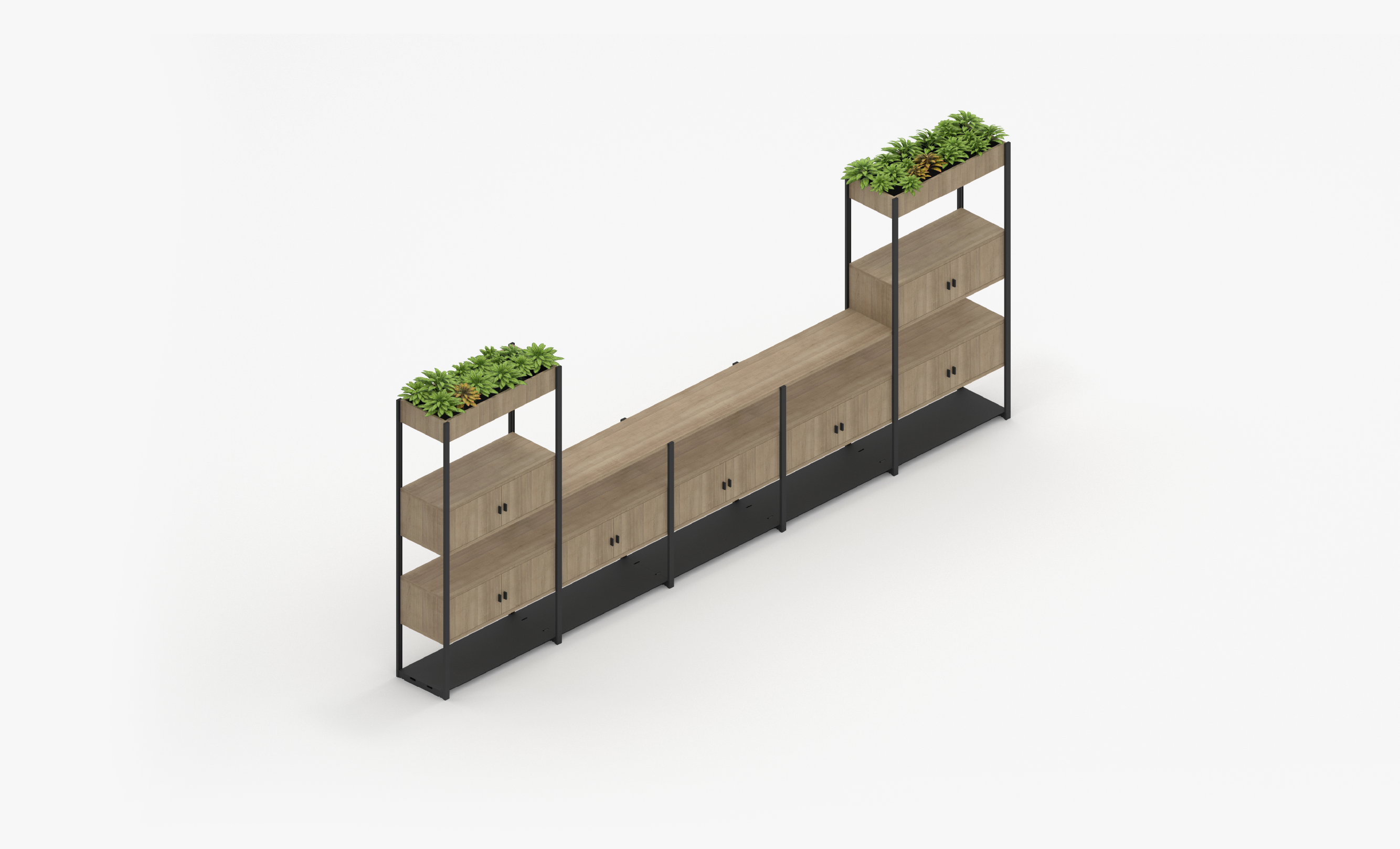 5 Bay Storage System with Cupboards and Planters