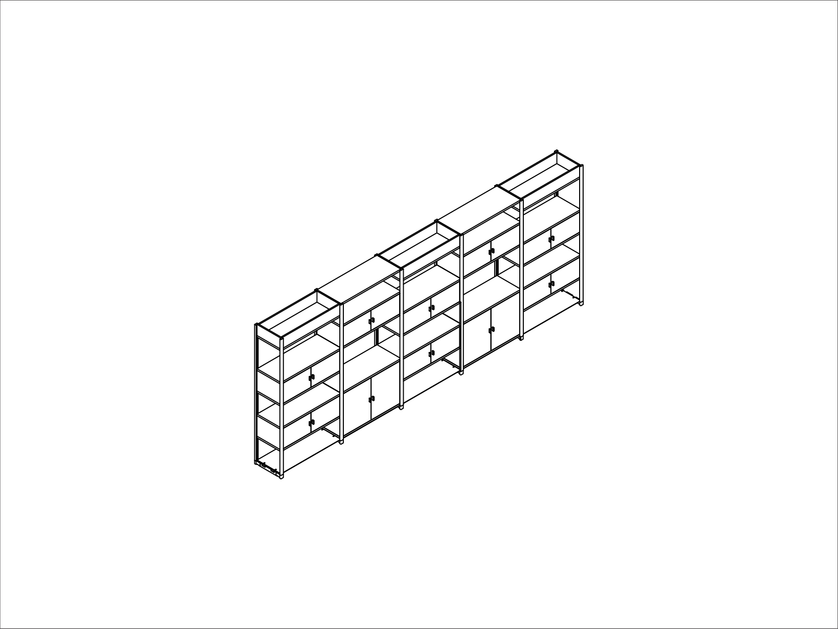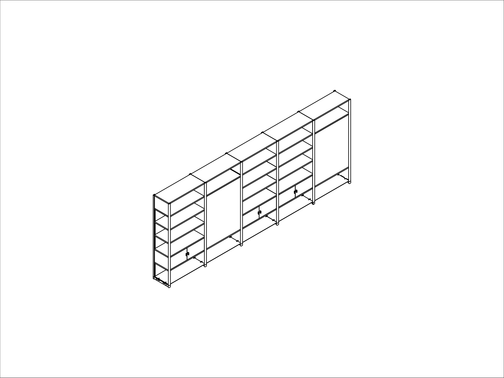 Adjacent Storage System with Shelves and Cupboards