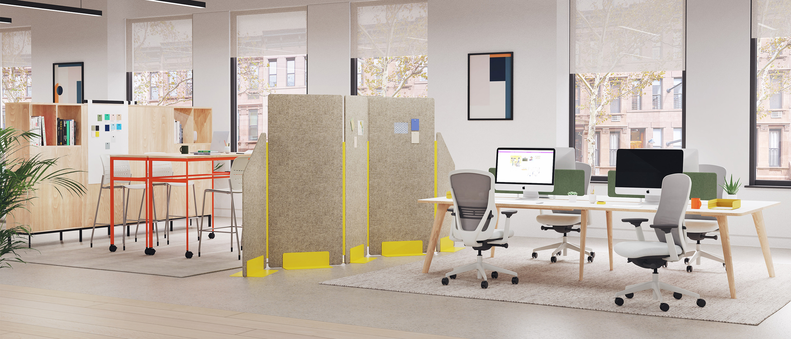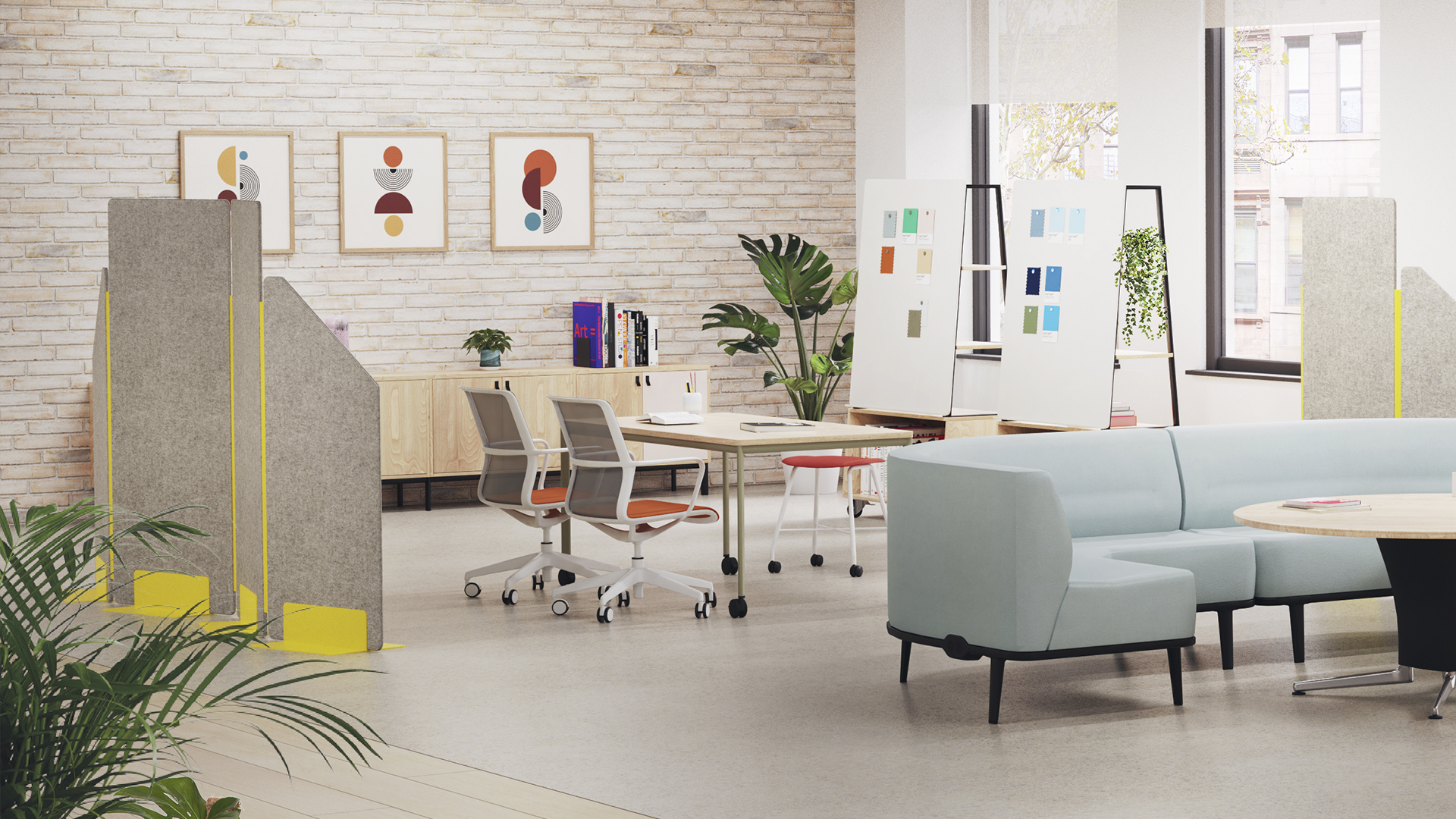 The upholstered Play screens not only help you to divide your space, but the soft upholstery helps to improve the acoustics of your working space. Giving you peace and quiet when you need it most.